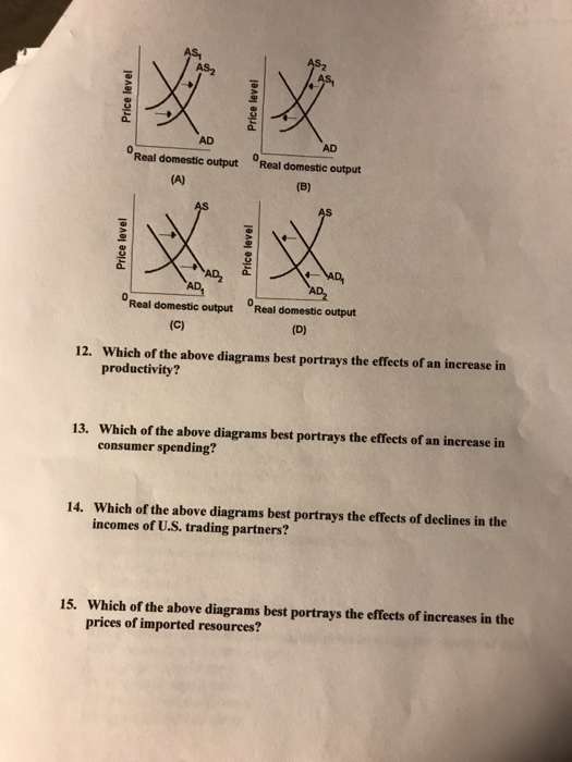Price Level Price Level Real Domestic Output Real Domestic Output Price Level AD AD Real Domestic Output Real Domestic Output C Which of the diagrams best portrays the effects of an increase in resource productivity. Which of the diagrams best portrays the effects of an increase in resource productivity. On 17 334 points Ques.